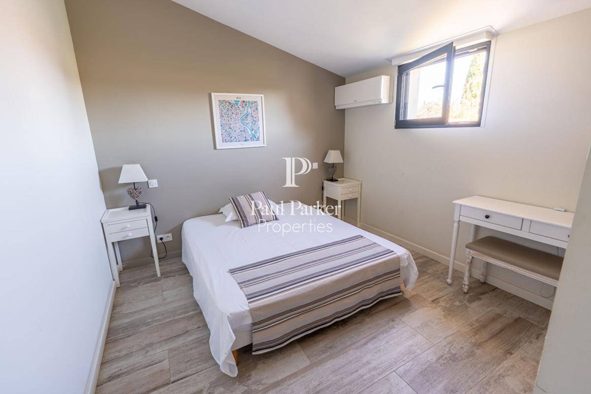 Dans un bâtiment à proximité immédiate de la maison, construit en 2017, se trouvent deux appartements T2 climatisés, avec terrasses privatives et accès sécurisé. Cette annexe bénéficie aujourd’hui d’un fort rendement locatif en meublé de tourisme. Comme alternative, elle vous permet d’accueillir une activité professionnelle ou bien vos proches en toute autonomie (adolescents, jeune fille au pair, parents, amis de passage) grâce à ses 2 belles suites avec espace bureau/de vie.