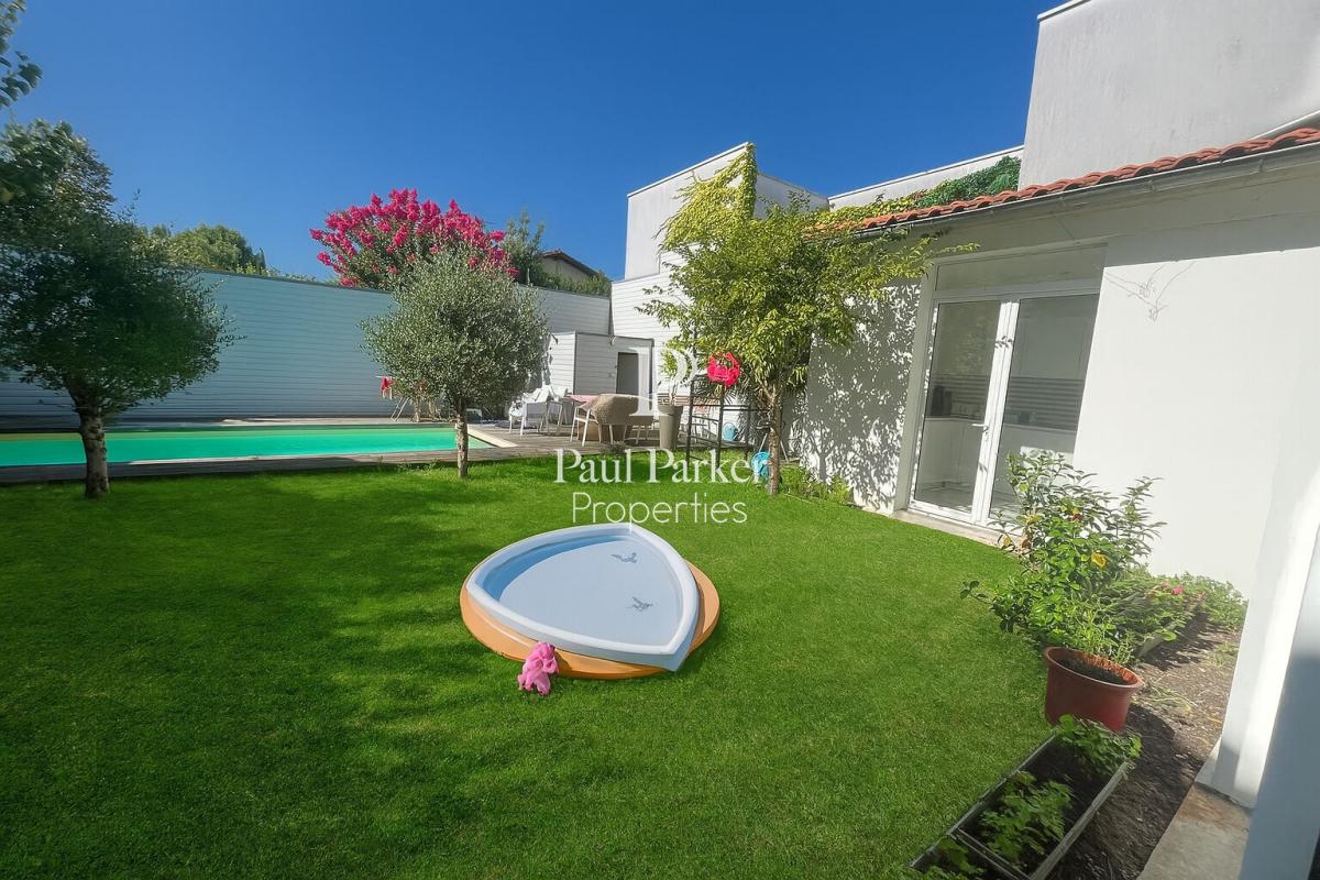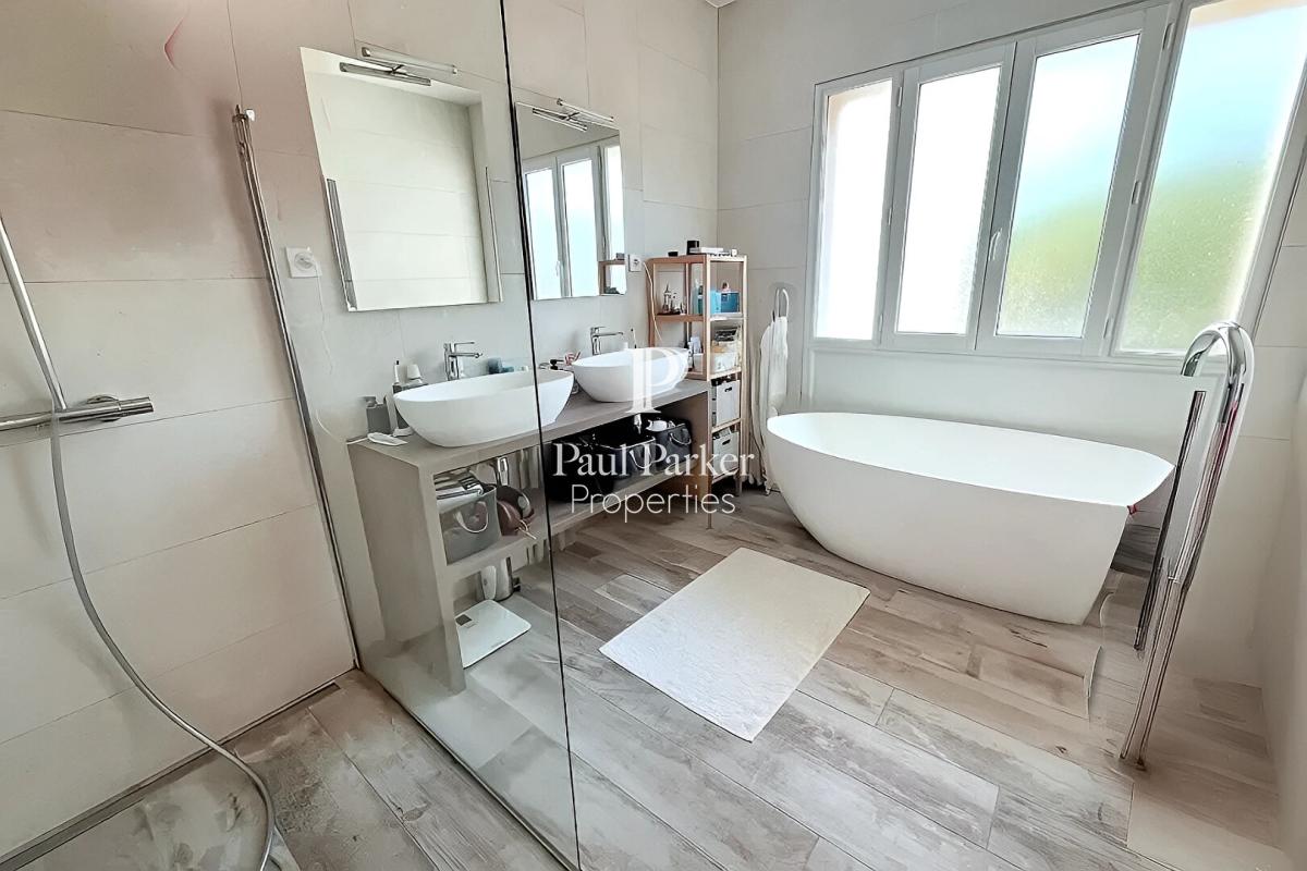 Dès l’entrée, vous serez accueilli par un vaste hall distribuant un bureau, une cuisine équipée haut de gamme avec arrière-cuisine, ainsi qu’un double séjour lumineux et une salle à manger, tous tournés vers un jardin intime de 200 m². L’extérieur paysagé accueille une grande piscine au sel, chauffée, à l’abri des regards.