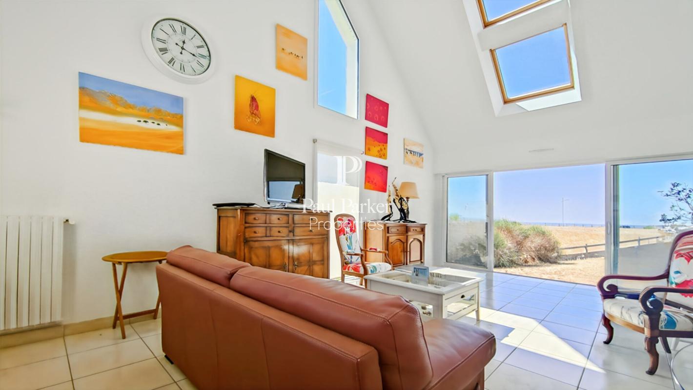 Paul Parker Properties vous présente cette maison spacieuse de 180 m2 avec 5 chambres , idéalement située à deux pas de la plage et de la piste cyclable du littoral, dans un environnement calme et préservé. Édifiée sur une superbe parcelle arborée et ensoleillée de 1 170 m², elle offre un cadre de vie rare et recherché. Vous bénéficiez d’une vue mer préservée par une parcelle mitoyenne protégée.