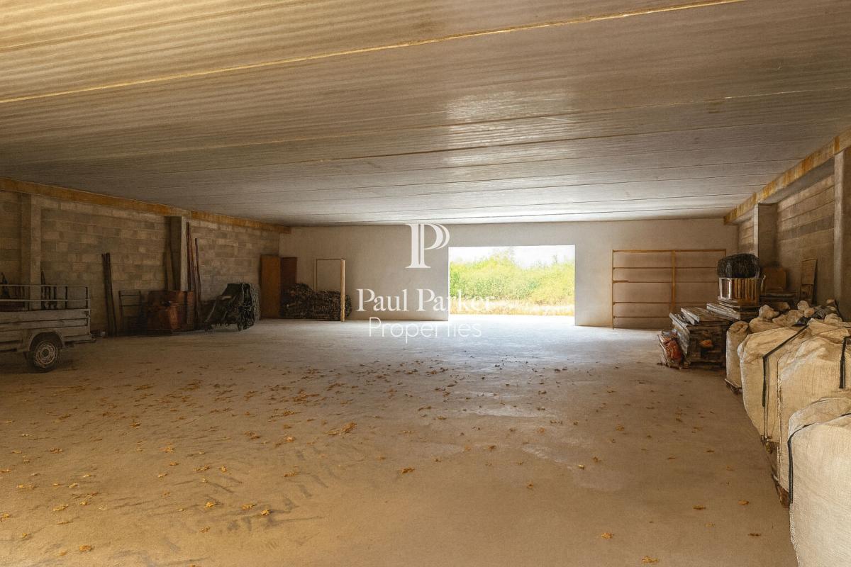 Entrepôt 300 m², sellerie avec salle d’eau et toilettes pour le personnel, douche d’hiver et douche d’été pour les chevaux.