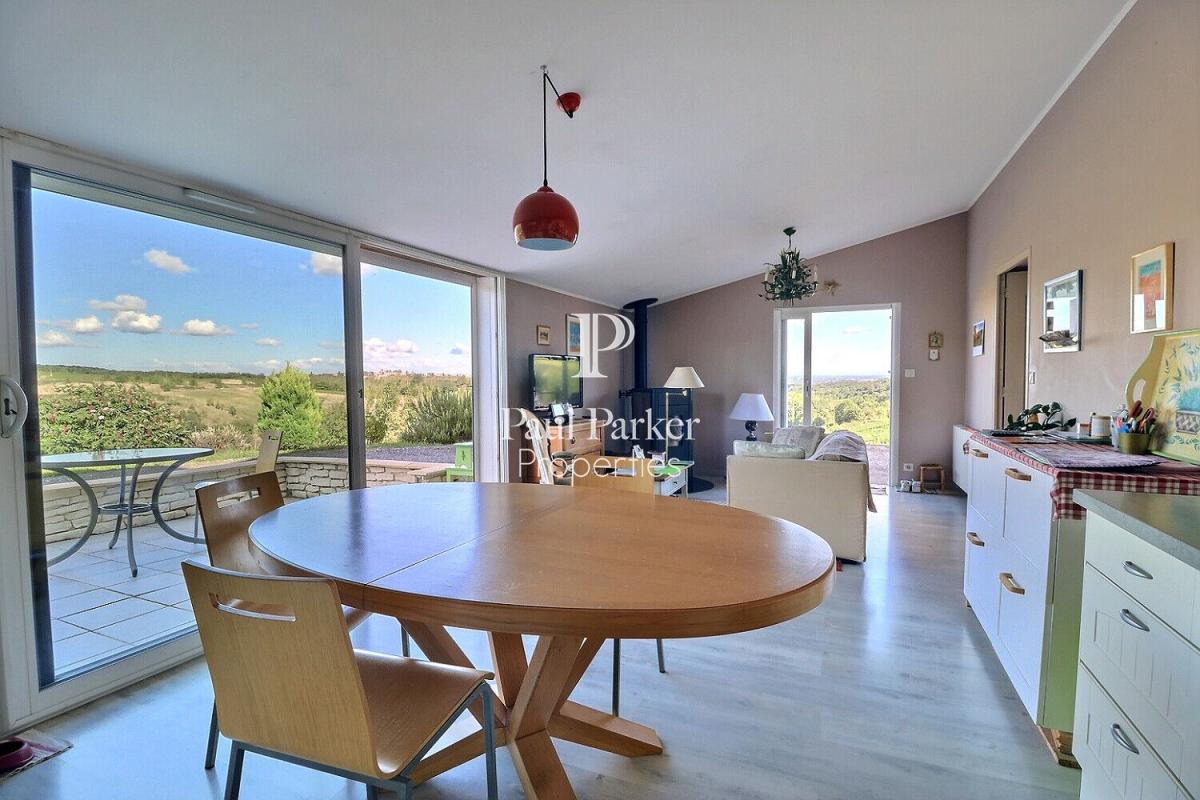 Environnement exceptionnel avec vue panoramique pour cette maison spacieuse avec piscine et logement indépendant en rez-de-jardin, l’ensemble à seulement quelques kilomètres des commerces et commodités.