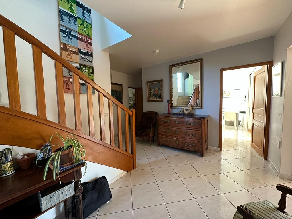 Édifiée en 2001 et idéalement positionnée sur une belle parcelle paysagée de 1 313 m², cette demeure d’environ 320 m² (259m² Carrez) séduit par sa luminosité naturelle, ses volumes généreux et son style harmonieux,