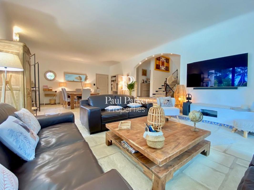 Idéalement située au coeur d’une magnifique pinède, à proximité des commodités du centre-ville, cette charmante villa provençale de 140 m² offre un cadre de vie paisible et raffiné, dans un environnement naturellement préservé. Édifiée sur un terrain arboré de 1100 m², cette propriété lumineuse exposée plein Sud se distingue par ses volumes généreux et le soin particulier apporté à chaque détail, dans le pur respect des codes esthétiques provençaux. Dès l’entrée, le ton est donné : un hall accueillant avec des toilettes pour les invités vous mène vers une vaste pièce de vie de 44 m², un salon/salle à manger ouvrant sur une grande terrasse ensoleillée à l’abri des regards et agrémentée d’une piscine chauffée au sel avec son pool-house enrichi d’un barbecue et un four à pizza, idéals pour profiter de bons et joyeux moments. La cuisine, entièrement aménagée et équipée, allie fonctionnalité et convivialité. L’espace nuit du rez-de-chaussée propose une suite parentale avec placards et sa salle de bains complète, ainsi qu’une seconde chambre confortable. A l’étage, deux chambres supplémentaires bénéficient chacune de leur placard et d’une salle de douche qui s’ouvrent sur une vaste terrasse d’environ 30 m², surplombant le jardin et la pinède, parfaite pour savourer la douceur de la détente. Un vaste sous-sol de 135 m² jouissant de nombreuses possibilités d’aménagement, trois places de stationnement, 3 places de parking, une pompe à chaleur récente, un cumulus thermostatique, des baies vitrées à galandage dans toutes les pièces et l’arrosage automatique viennent enrichir le confort de ce bien rare, optimal pour une résidence principale comme secondaire. Contactez-moi pour planifier une visite … vous serez instantanément séduits par la beauté et la sérénité des lieux ! Ce bien vous est présenté au prix de 1 295 000 euros honoraires à charge acquéreur inclus: 5.00 % TTC, soit 1 233 333 euros hors honoraires. DPE : B indice 98 – GES : A indice 3. Montant moyen estimé des dépenses annuelles d’énergie pour un usage standard établi à partir des prix de l’énergie de l’année 2021 : 1039 euros. Cette présente annonce a été rédigée sous la responsabilité éditoriale de Massimiliano VOLPE agissant sous le statut d’agent commercial immatriculé au RSAC CANNES n° 887 488 989 auprès de PAUL PARKER PROPERTIES, domicilié 10 rue du Colisée 75008 PARIS, marque de la SAS PROPRIETES PRIVEES, Réseau national immobilier, au capital de 40 000 euros, RCS NANTES n° 487 624 777, Carte professionnelle T et G n° CPI 4401 2016 000 010 388 CCI Nantes, Garantie GALIAN, 89 rue La Boétie, 75008 Paris. Mandat réf. : 4343683PMVORZ – Le professionnel garantit et sécurise votre projet immobilier. (5.00 % honoraires TTC à la charge de l’acquéreur.)