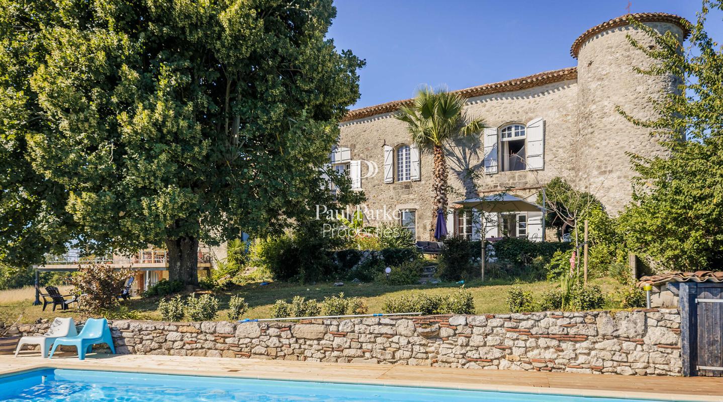 Authentique château du XIIIe siècle avec gîtes, grange et piscine au coeur des collines du Lot-et-Garonne.
