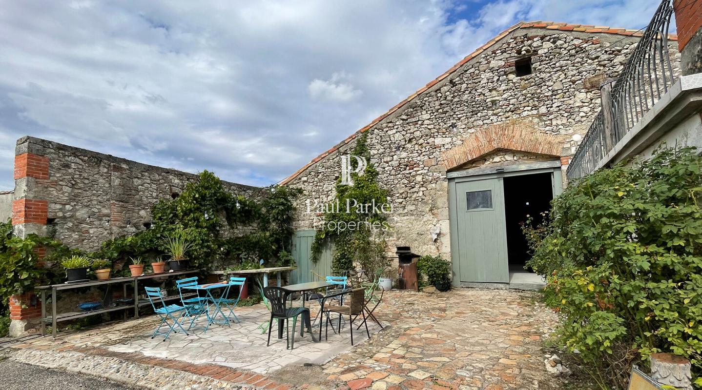 La propriété comprend également une vaste grange offrant un beau potentiel, actuellement utilisée comme atelier et espace de travail, facilement adaptable à des activités créatives, professionnelles ou de loisirs. Un potager, diverses dépendances et des vestiges en pierre pleins de caractère viennent compléter l’ensemble.