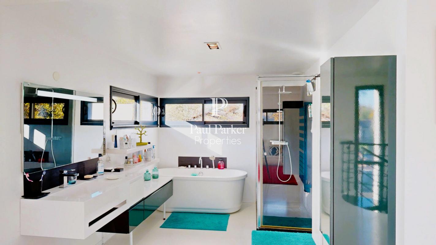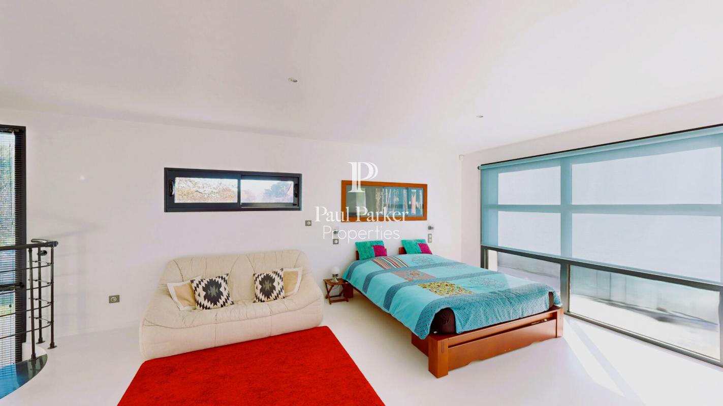 Upstairs, the 38 m² master suite features a bathroom, shower, dressing room, and a second bedroom. Two additional bedrooms can easily be created, bringing the total surface area to 163 m².