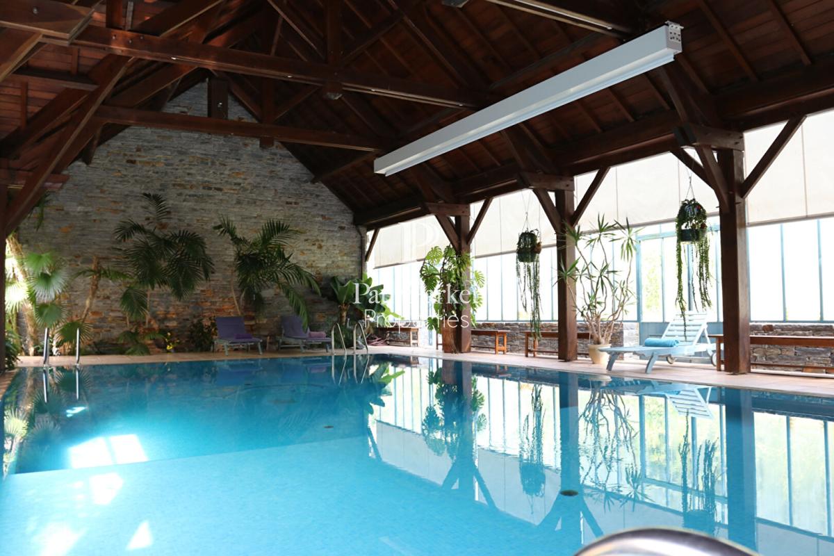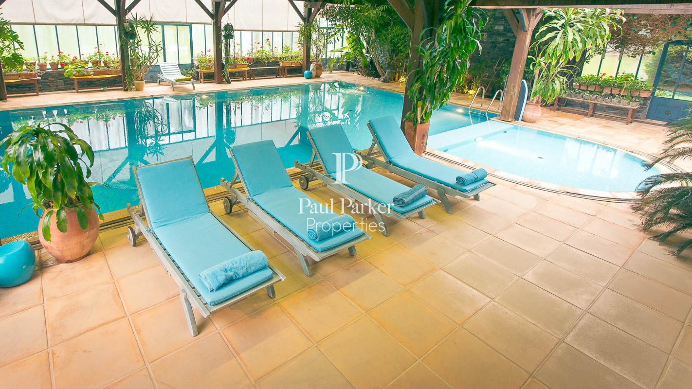 56200 La Gacilly. In the triangle formed by Vannes, Rennes, and Nantes, Paul Parker Properties presents a harmonious and exceptional manor house, fully restored and nestled in the heart of a 14-hectare park. Equidistant between Rennes and Vannes, 40 km from the sea, and 15 minutes from a train station with high-speed rail connections to Paris in 2.5 hours, this imposing 16th-century manor has been completely restored and is admirably well-preserved and maintained. The upper floors comprise 13 bedrooms and 13 bathrooms. The living rooms, dining room, office, music room, and kitchen are located on the garden level. Two very romantic and well-equipped cottages can accommodate up to 10 people. One of them opens directly onto the indoor swimming pool with its tropical feel. The setting is magical and unexpected, spanning over 280 sqm, with a welcoming reception area where guests will happily linger. Equestrian arts are very much in evidence here, and the facilities are suitable for both amateurs and professionals. Horses enjoy vast pastures, 16 stalls (two of which are dedicated to foaling), an outdoor arena, and a 20×20 meter indoor riding arena. A tack room, equipment shop, and clubhouse/piano bar are also available for riders. Barns and other outbuildings complete the property. The manor house boasts a consecrated chapel, a unique and preserved space. A tennis court, an old forge tower to be restored, various outbuildings, and an orchard complete the grounds. The property is suitable for an existing commercial activity and has the potential to be expanded to include private events such as weddings or seminars. The elegance and quality of this property are remarkable. The charm of the park with its centuries-old trees, the Renaissance architecture of the manor house, and its grounds that gently slope down to the river make this an enchanting place. A complete file is available upon request. Proof of financial capacity will be required before a visit. Energy Performance Certificate (EPC): E-347 Greenhouse Gas Emissions (GHG): -85 In accordance with Article L.561.5 of the French Monetary and Financial Code, you will be required to present identification to arrange a viewing. This sale is guaranteed for 12 months. All offers will be carefully considered. I am offering this property at a price of EUR5,200,000.00. Agency fees of 4% are payable by the buyer, resulting in a net price of EUR5,000,000.00 for the seller. This advertisement was written under the editorial responsibility of Anne-Elizabeth de Romans (06 50 38 74 04 ae.deromans@paul-parker-properties.com) acting as a real estate consultant under an umbrella company for Paul Parker Properties, located at 10 rue du Colisée 75008 Paris, a brand of SAS PROPRIETES PRIVEES, a national real estate network with a capital of 40,000.00 euros, RCS NANTES n° 487 624 777, Professional card T and G n° CPI 4401 2016 000 010 388 CCI Nantes, Guarantee GALIAN, 89 rue La Boétie, 75008 Paris – T: 1,500,000 euros – G: 120,000 euros. Information on the risks to which this property is exposed is available on the Géorisques website: www.georisques.gouv.fr.