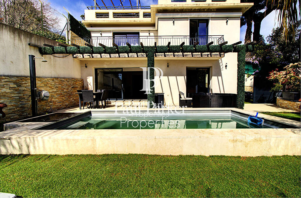 Located in a residential area 8 minutes walk from the beaches of La Croisette and the Forville market, built on 2 levels on a plot of 350 sqm, this charming 6-room villa of 208 sqm recently renovated and facing South is composed of an entrance, a bright living / dining room of 45 sqm opening onto a terrace decorated with a heated swimming pool, an open equipped kitchen, a spacious laundry room, a bedroom with a complete en-suite shower room and a guest toilet with hand basin. Upstairs, it has 3 bedrooms with wardrobes, one of which has a bathroom and a complete en-suite shower, a second shower room and a relaxation terrace. And on the top level, a 68 sqm terrace sheltered from view with sea view awaits you to easily receive your friends. 3 parking spaces, one of which is secure, complete the comfort of this rare property. Be welcome and come and visit it, you will be instantly seduced by its beauty! This property is presented to you at the price of 1,790,000 euros, fees payable by the seller. DPE: C index 112 – GES: A index 3 This present advertisement was written under the editorial responsibility of Massimiliano VOLPE acting under the status of commercial agent registered with the RSAC CANNES n° 887 488 989 with PAUL PARKER PROPERTIES, domiciled at 10 rue du Colisée 75008 PARIS, brand of SAS PROPRIETES PRIVEES, National real estate network, with capital of 40,000 EUR, RCS NANTES n° 487 624 777, Professional card T and G n° CPI 4401 2016 000 010 388 CCI Nantes, GALIAN Guarantee, 89 rue La Boétie, 75008 Paris. Mandate ref. : 3619853PMVORZ – The professional guarantees and secures your real estate project.