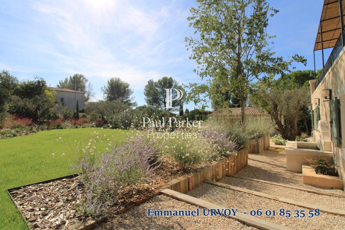 Its vast, light-filled living areas invite conviviality. Enjoy an ultra-modern open kitchen with a dining area, and a generously sized double living room opening directly onto a pergola-shaded terrace. From there, your gaze sweeps over a landscaped garden offering several dedicated relaxation areas. The pool area with its sparkling blue basin is framed by its terraces, its pool house with a summer kitchen, and its bocce ball court. The ideal spot to enjoy summer in complete privacy!