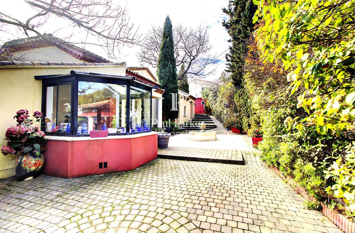 Nestled in the heart of the highly sought-after Cap Brun residential area, this charming Provençal-inspired property unfolds over two levels within a magnificent 1,380 sq m landscaped plot, perfectly south-facing. Spanning approximately 260 sq m, this 9-room residence immediately captivates with its generous proportions, authentic character, and high-quality features. Upon entering, a refined reception hall opens onto a sumptuous reception area of nearly 100 sq m, comprising a living room and dining room, enhanced by a characterful fireplace and a remarkable Napoleon III stained-glass window, a true architectural signature of the property. This bright living space opens harmoniously onto a lush, secluded garden, offering a peaceful and intimate setting. Outside, an elegant swimming pool with a fully equipped pool house provides the perfect setting for relaxation and socializing. The property also features a fully equipped eat-in kitchen extending onto a tree-lined patio, a functional laundry room, a guest toilet, and four bedrooms, all with built-in wardrobes and en-suite bathrooms. A separate studio apartment of approximately 30 sq m, perfectly suited for a professional practice, accommodating guests, or rental income, along with seven parking spaces, complete the amenities of this exceptional property. A viewing is highly recommended… you’re sure to fall in love! This property is offered at EUR1,370,000 including buyer’s fees of 5.00% (VAT included), or EUR1,304,762 excluding fees. Energy Performance Certificate (EPC): C (149 kWh/sqm/year) – Greenhouse Gas Emissions (GHG): C (29 kg CO?/sqm/year). Estimated average annual energy costs for standard use, based on 2021 energy prices: EUR2,897. This advertisement was written under the editorial responsibility of Massimiliano VOLPE, acting as a registered sales agent (RSAC Cannes No. 887 488 989) for PAUL PARKER PROPERTIES, located at 10 rue du Colisée, 75008 Paris, a brand of SAS PROPRIETES PRIVEES, a national real estate network with a capital of EUR40,000, registered with the Nantes Trade and Companies Register (RCS Nantes No. 487 624 777), Professional License T and G No. CPI 4401 2016 000 010 388 issued by the Nantes Chamber of Commerce and Industry (CCI Nantes), Guaranteed by GALIAN, 89 rue La Boétie, 75008 Paris. Mandate ref.: 4356663PMVORZ – The professional guarantees and secures your real estate project.