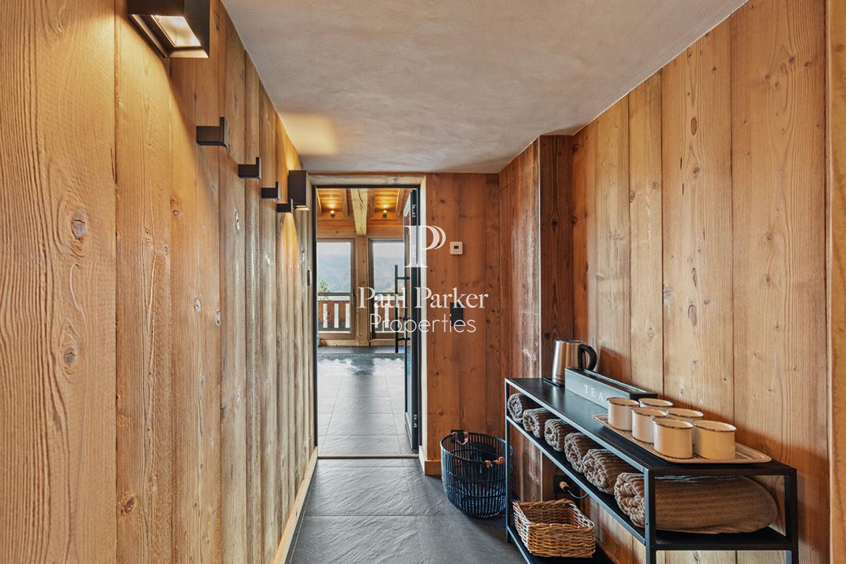 The chalet enjoys beautiful panoramic mountain views and offers a full wellness area with swimming pool, hammam, sauna, jacuzzi and private cinema room, delivering the lifestyle expected from a prime Alpine property.