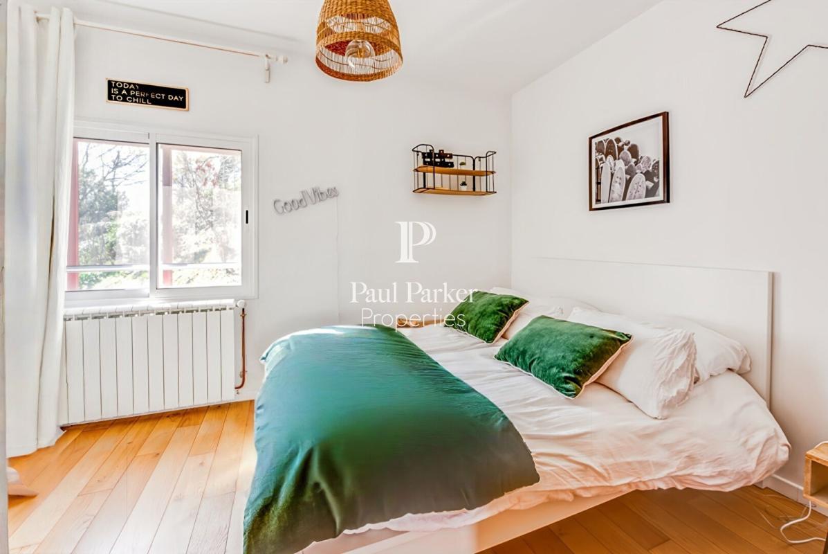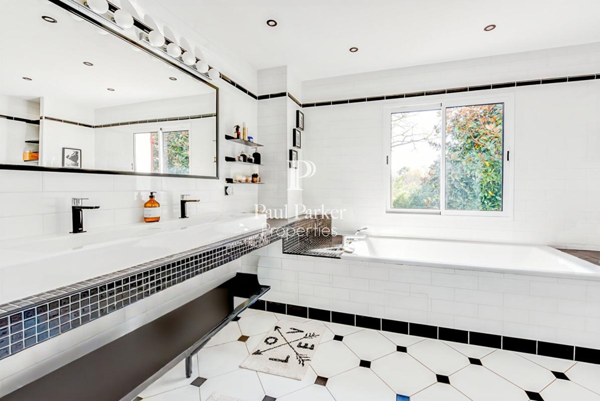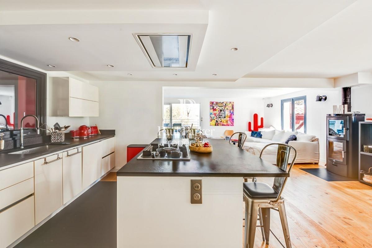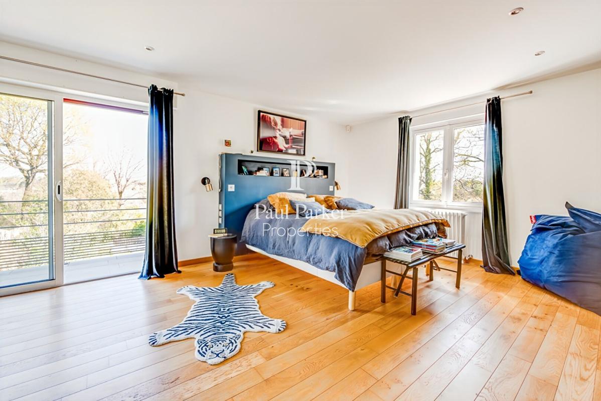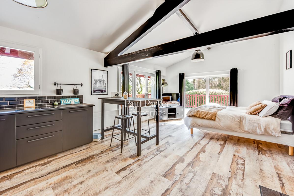 Discover this magnificent villa, a perfect blend of neo-Basque charm and clean, modern architecture. Nestled in lush greenery, it offers an exceptional living environment just minutes from the golf courses and beaches of the Basque Coast. From the moment you enter, the tone is set by a vast, light-filled living space, with a fully equipped kitchen that flows seamlessly into the living room, which opens directly onto a superb terrace. A true invitation to conviviality, this outdoor space features a plancha grill, ideal for entertaining loved ones in a verdant setting with unobstructed views. The sleeping quarters are located upstairs, with four bedrooms, including a master suite complete with a dressing room and bathroom. The ingenuity of its design is evident in its fluidity: a sculptural concrete staircase leads to the reinforced concrete, saltwater swimming pool, heated sustainably by solar panels, allowing you to enjoy swimming in complete privacy with optimized energy management. The property also includes an office, a laundry room, a cellar, and a garage for bicycles or scooters. The real highlight of this property is its fully equipped annex, comprising a kitchen, a bedroom, and a bathroom, offering complete independence for your guests or high-quality rental potential. A rare residence, designed for the art of living and sharing. (2.96 % fees incl. VAT at the buyer’s expense.)