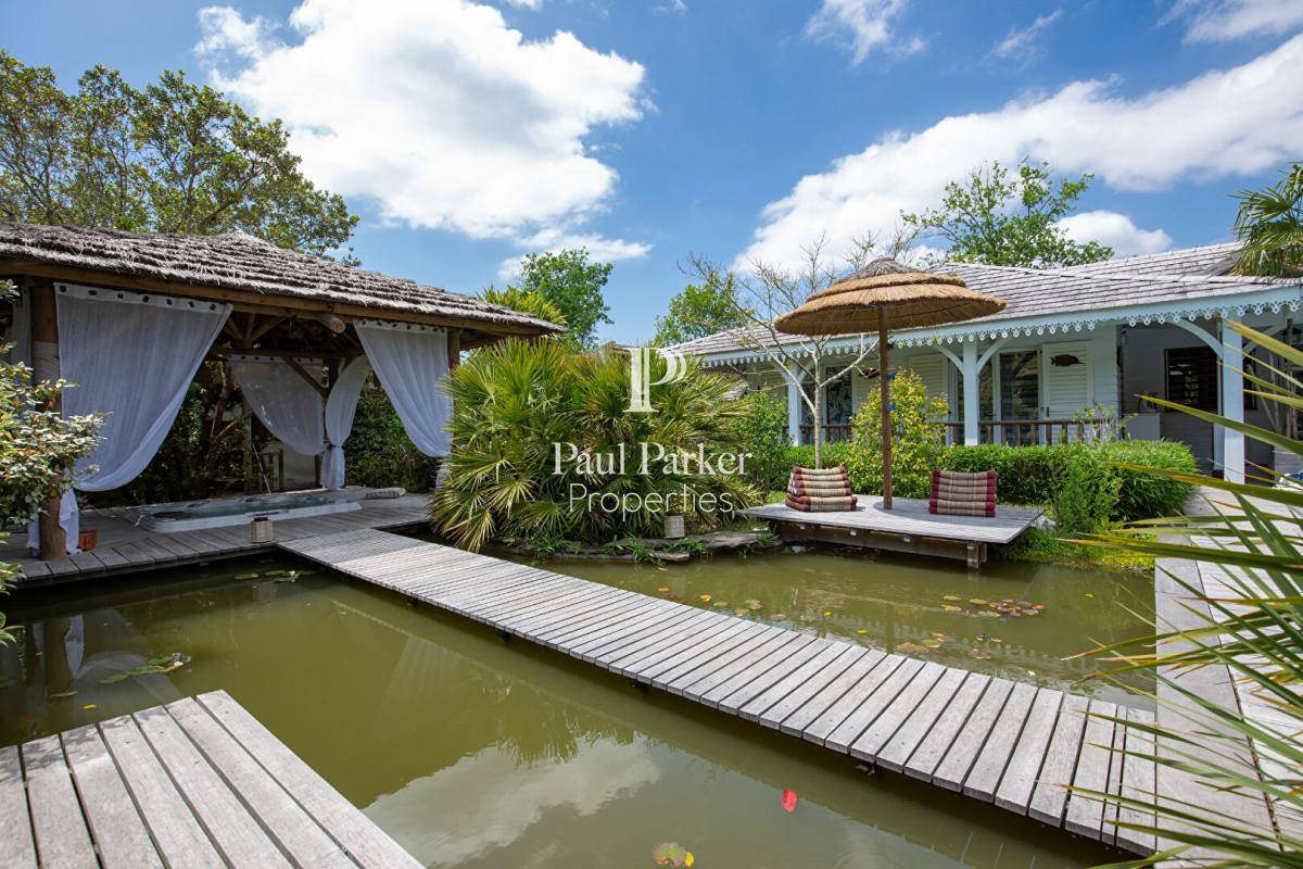Immerse yourself in the discovery of this truly charming property nestled within a tropical garden filled with bamboo, palm trees, and ornamental fish ponds, enhanced by wooden terraces designed as an invitation to relaxation.
